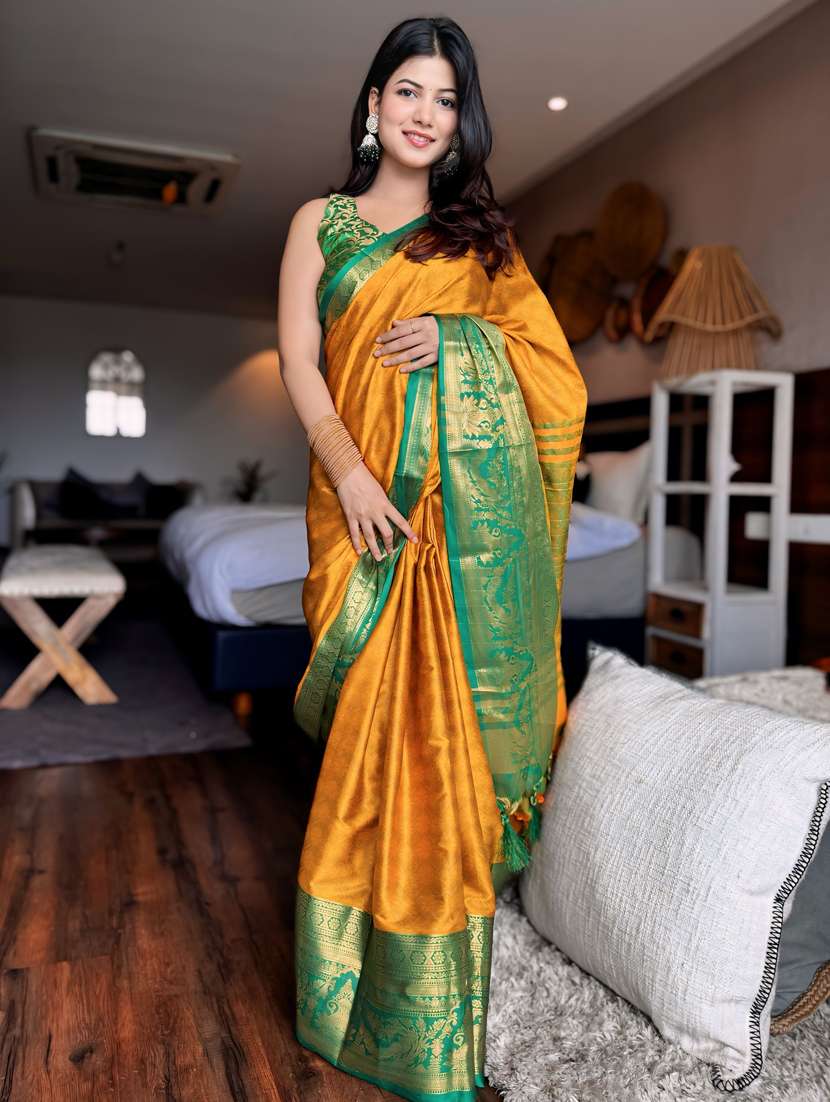 Elegance personified, this Banarasi pure Zari Silk Saree is a masterpiece of traditional weaving. Crafted with precision and dedication, this saree showcases the rich heritage of Banarasi jacquard weaving.