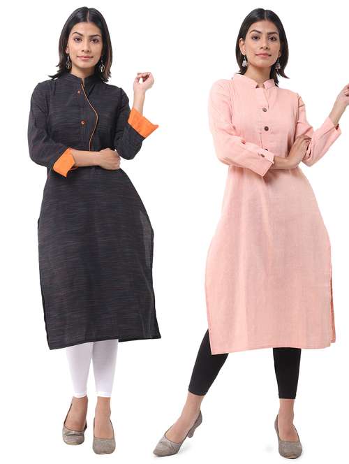 women pack of 2 solid straight kurta