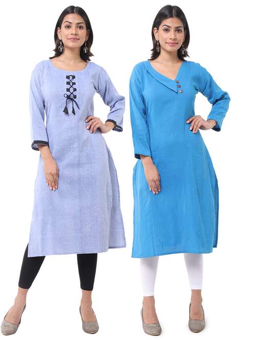 women pack of 2 solid straight kurta
