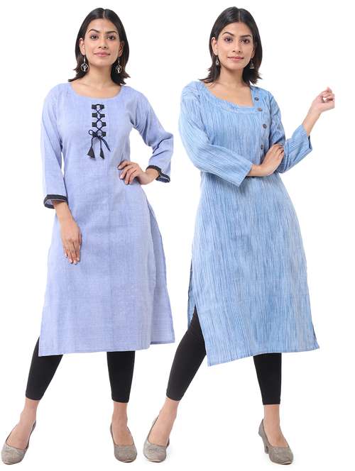 women pack of 2 solid straight kurta