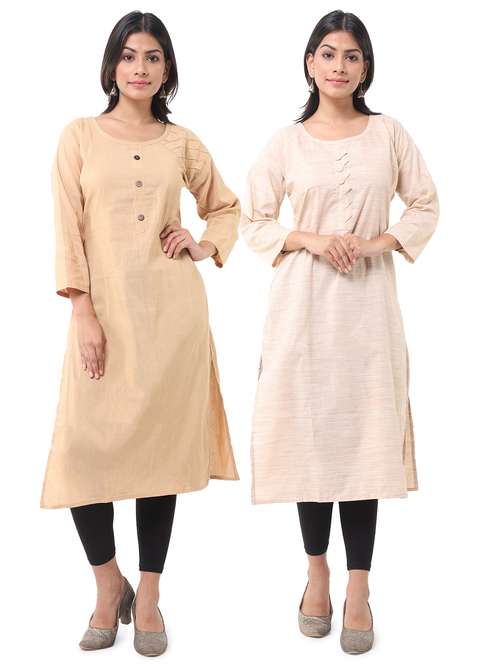 women pack of 2 solid straight kurta