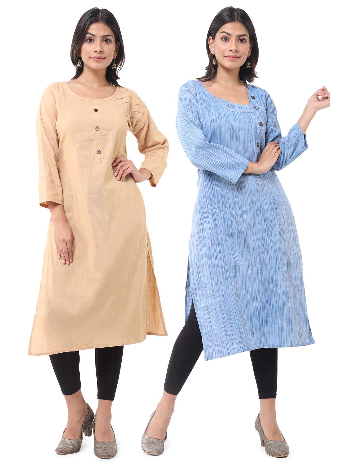 women pack of 2 solid straight kurta