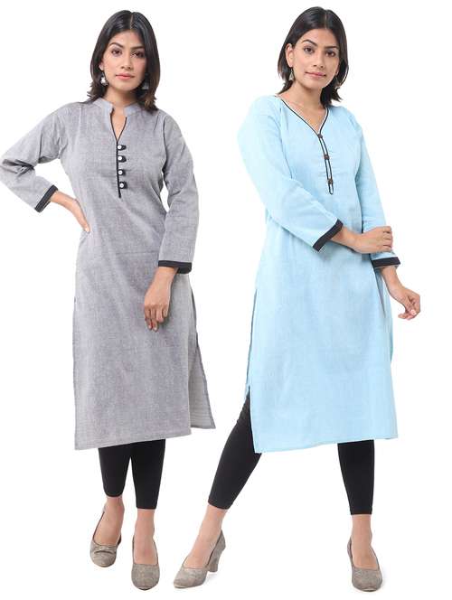 women pack of 2 solid straight kurta combo