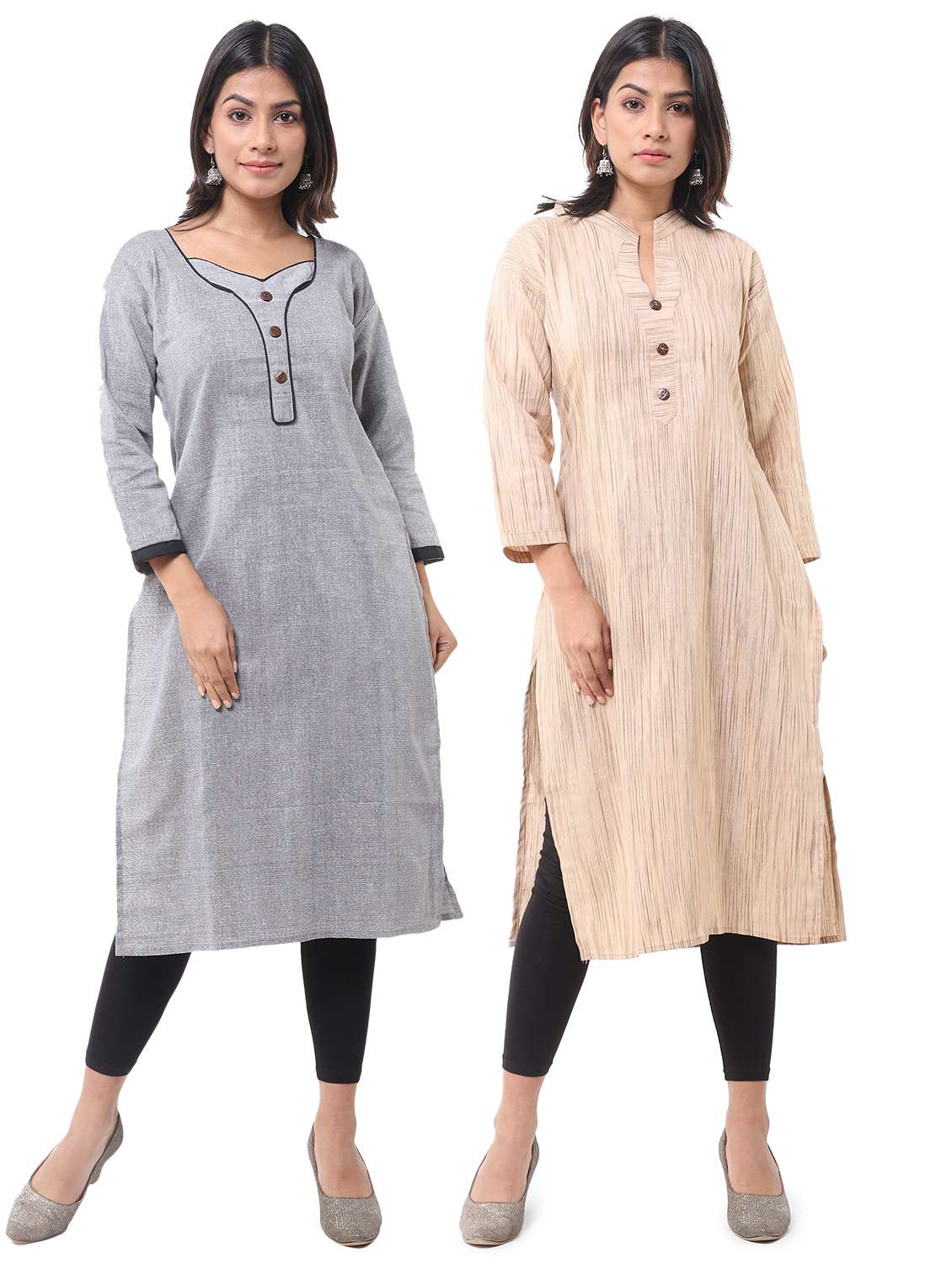 women pack of 2 solid straight kurta combo