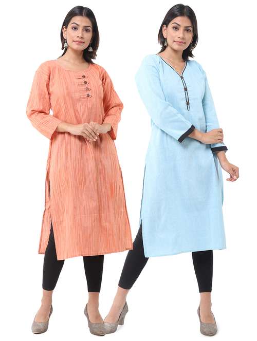 women pack of 2 solid straight kurta combo - 21585191 - Very Small Image - 1