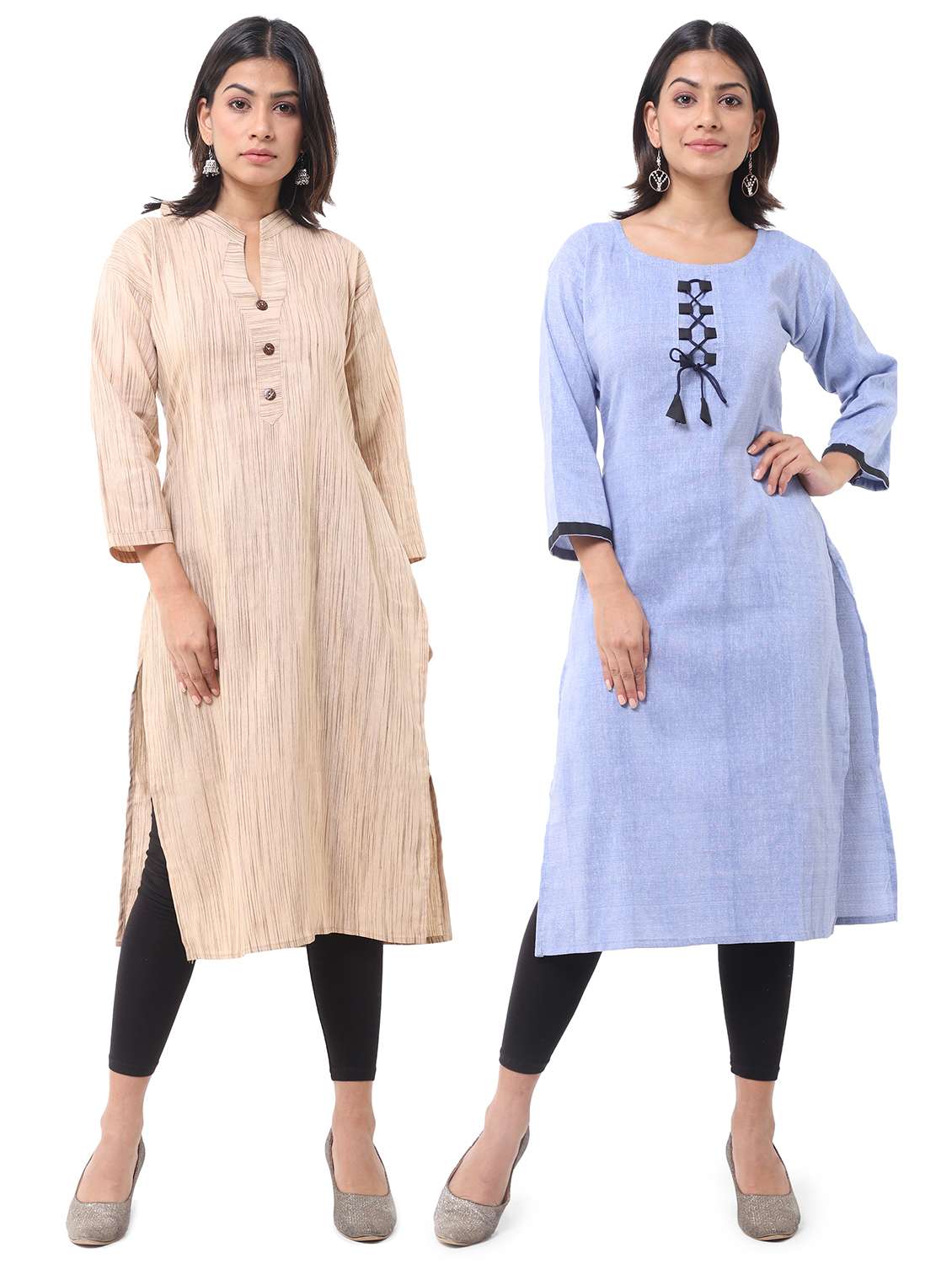 women pack of 2 solid straight kurta - 21585384 - Very Small Image - 1
