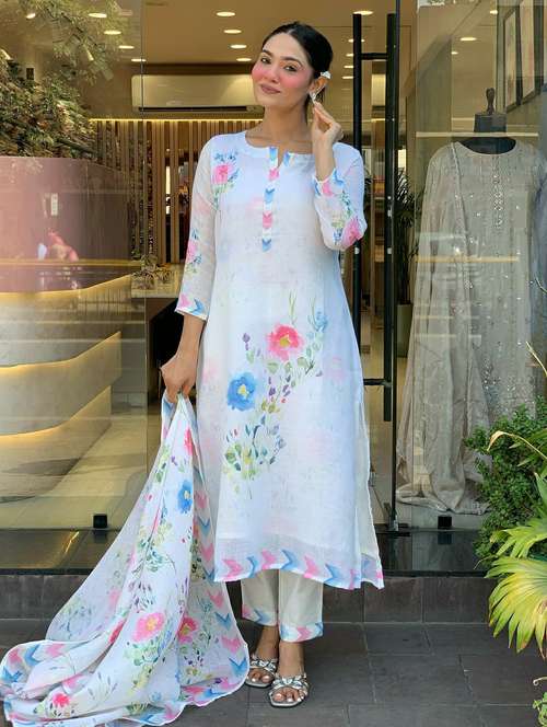 • Find gorgeous sets of ethnic wears in trending designs in white colors suitable for casual wear of occasions.