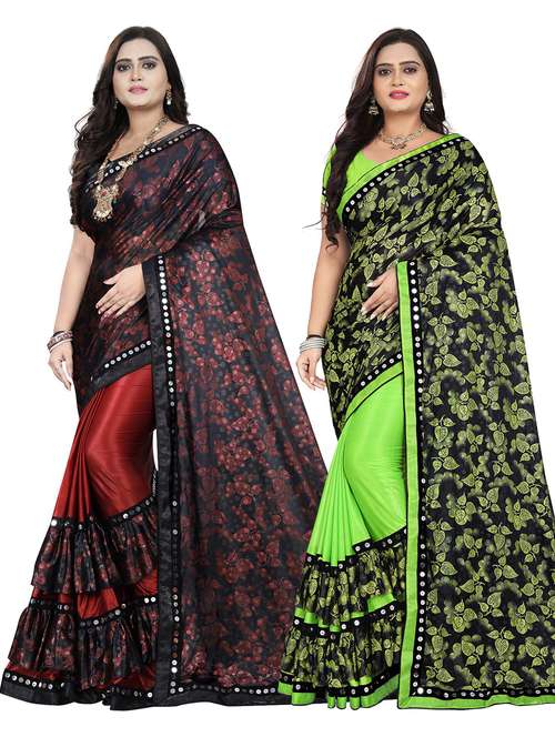We offer high Quality Range of Printed Sarees that is Designs by our team of Creative Professionals and at the same time perfect mix of modern patterns and contemporary designs of ethnic collection. Look stunningly beautiful in this lovely sari that is decorated with intricately Lycra ruffles. Matching blouse is available to add the glam. There might be color variation due to screen resolution and digital photography. This sari is an ideal for Occasions like casual, traditional, party wear, festival, wedding...