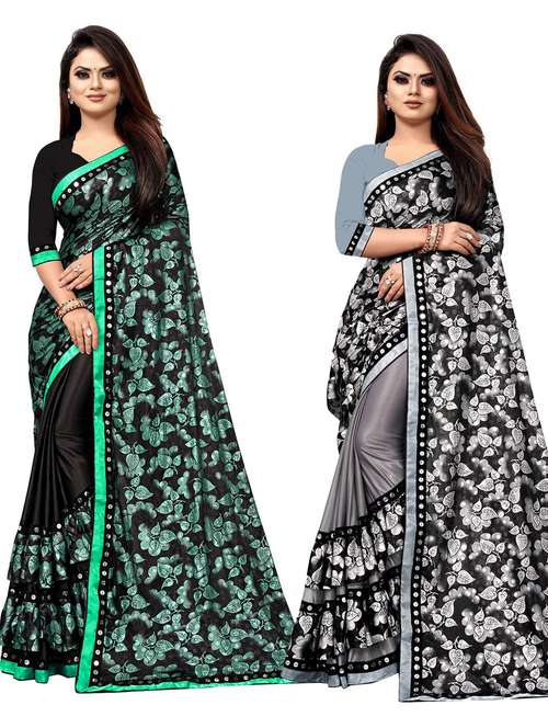 This Multi Color Combo offer Saree has printed Frill and Sequence Lace Border. We offer High Quality Range of Printed Sarees that is Designed by our team of Creative Professionals and at the same time perfect mix of modern patterns and contemporary designs of ethnic collection. This saree is crafted with Lycra fabric, which is further enriched with beautiful Floral prints that makes you look awesome and stunningly beautiful in this lovely half & half sari that is decorated with intricately printed Lycra Ruffles/Frill. Matching unstitched Banglory Silk Blouse Piece, which can be stitched as per your choice & requirement that add the glam. There might be color variation due to screen resolution and digital photography. This sari is an ideal for Occasions like casual, traditional, party wear, festival, wedding.
