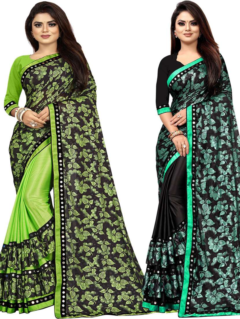 This Multi Color Combo offer Saree has printed Frill and Sequence Lace Border. We offer High Quality Range of Printed Sarees that is Designed by our team of Creative Professionals and at the same time perfect mix of modern patterns and contemporary designs of ethnic collection. This saree is crafted with Lycra fabric, which is further enriched with beautiful Floral prints that makes you look awesome and stunningly beautiful in this lovely half & half sari that is decorated with intricately printed Lycra Ruffles/Frill. Matching unstitched Banglory Silk Blouse Piece, which can be stitched as per your choice & requirement that add the glam. There might be color variation due to screen resolution and digital photography. This sari is an ideal for Occasions like casual, traditional, party wear, festival, wedding.