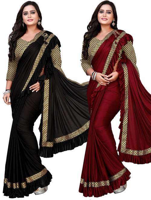 We offer a high Quality Range of Plain/Solid Saree with Jacquard Lace Border that is Designs by our team of Creative Professionals and at the same time a perfect mix of modern patterns and contemporary designs of ethnic collection. Look stunningly beautiful in this lovely sari that is decorated with intricately Lycra ruffles. Matching Jacquard Blouses are available to add the glam. search with keyword sari saree fancy embroidery sadi latest new designer party wear collection arrival banglori mysure silk cotton paper tissue art katchi stone work kutch patola bandhani printed daily zari flower ribbon hand wedding traditional rangoli georgette linen chanderi bollywood crepe multicolor casual Festival saree Kanjeevaram Banarasi Kamal Kudi Chiffon Georgette Silk Cotton Sana Banglori Printed Floral velvet Chanderi Art sarees chiffon Lace Sarees Net kanjivaram Mysore banarasi bhagalpuri Plain Patola Designer Party Wear Latest Design Party Punjabi Wedding Kanjivaram Readymade Georgette Bandhani Black Net Red Tussar Yellow Traditional Gold Linen Embroidery Bollywood Banglore Crepe Bengal Satin Khadi Orange Zari Maroon Multicolor Casual Poly Silver Violet Contemporary Coral Embellishments Ceremonial Grey Turquoise Ochre Polyester Embroidered Handwoven Half online blouse at low price