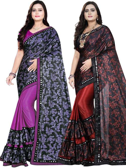 We offer high Quality Range of Printed Sarees that is Designs by our team of Creative Professionals and at the same time perfect mix of modern patterns and contemporary designs of ethnic collection. Look stunningly beautiful in this lovely sari that is decorated with intricately Lycra ruffles. Matching blouse is available to add the glam. There might be color variation due to screen resolution and digital photography. This sari is an ideal for Occasions like casual, traditional, party wear, festival, wedding...