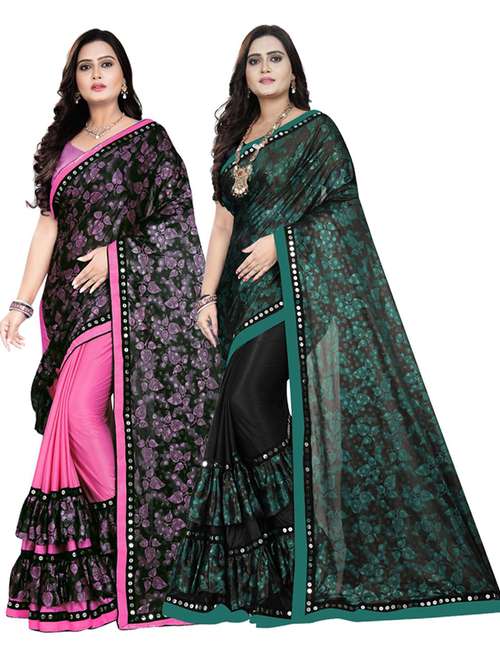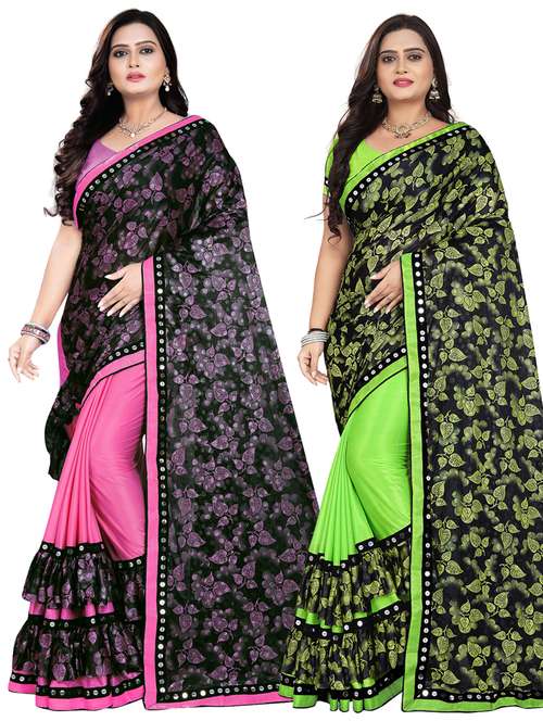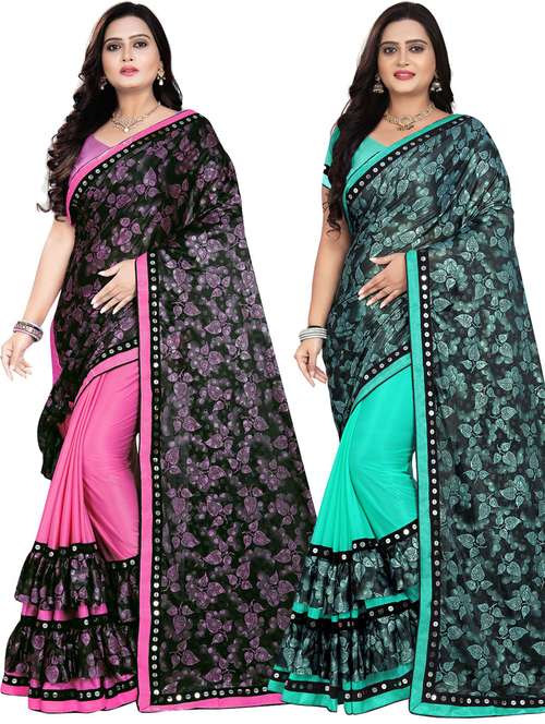 We offer high Quality Range of Printed Sarees that is Designs by our team of Creative Professionals and at the same time perfect mix of modern patterns and contemporary designs of ethnic collection. Look stunningly beautiful in this lovely sari that is decorated with intricately Lycra ruffles. Matching blouse is available to add the glam. There might be color variation due to screen resolution and digital photography. This sari is an ideal for Occasions like casual, traditional, party wear, festival, wedding...