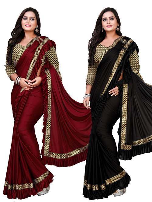 3Buddy Fashion Solid Plain Lace Border Daily Wear Party wear Wedding Wear casual wear festive wear bollywood new collection latest design trendy women's saree/sari will be a perfect addition to your ethnic collection. This Saree made with Lycra Fabric wit