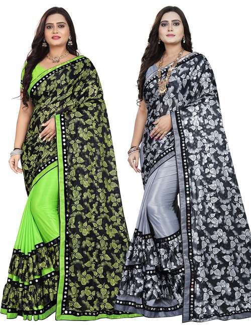 We offer high Quality Range of Printed Sarees that is Designs by our team of Creative Professionals and at the same time perfect mix of modern patterns and contemporary designs of ethnic collection. Look stunningly beautiful in this lovely sari that is decorated with intricately Lycra ruffles. Matching blouse is available to add the glam. There might be color variation due to screen resolution and digital photography. This sari is an ideal for Occasions like casual, traditional, party wear, festival, wedding...