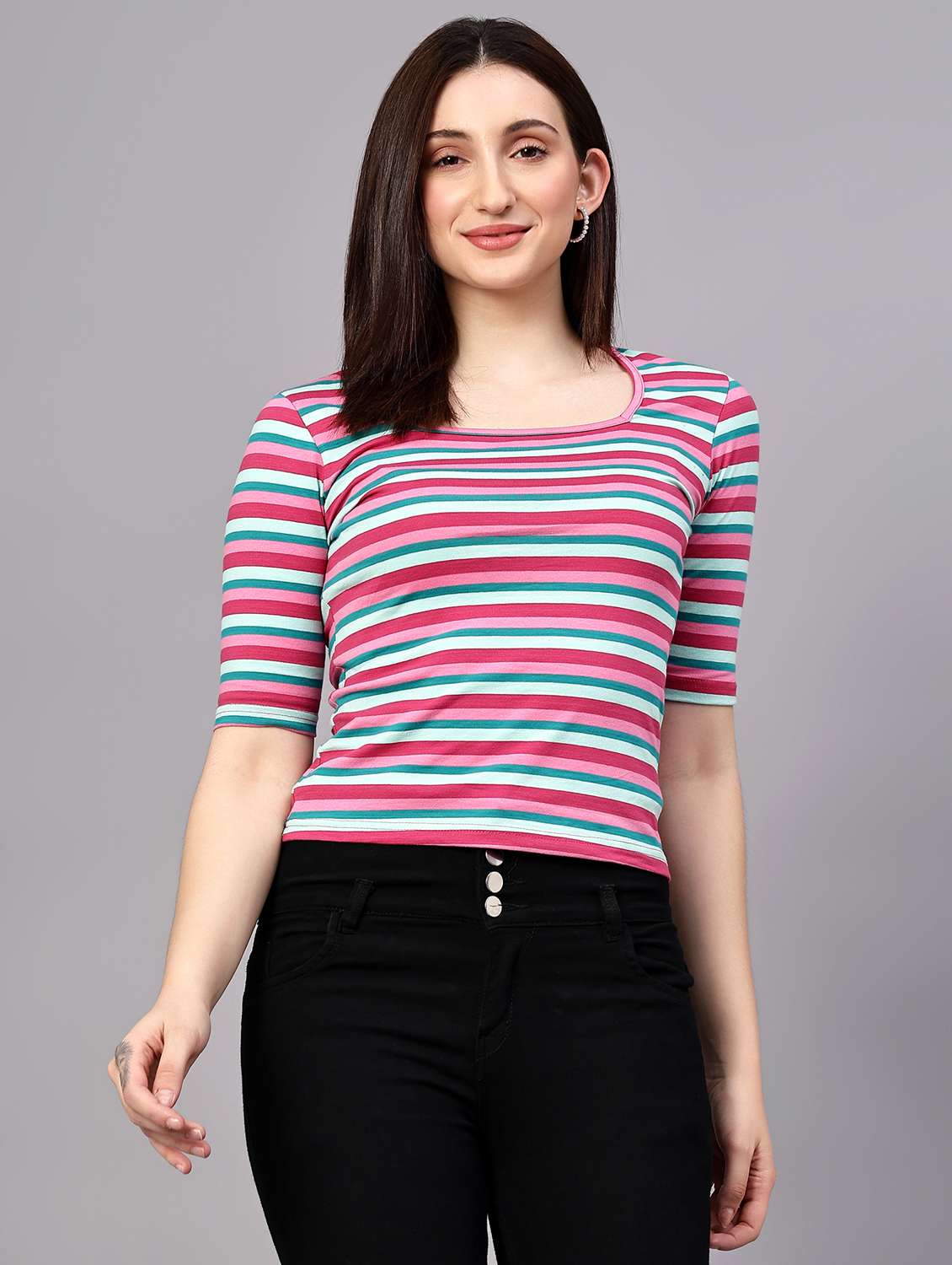 women multi colored lycra blend regular top - 21351714 - Very Small Image - 1