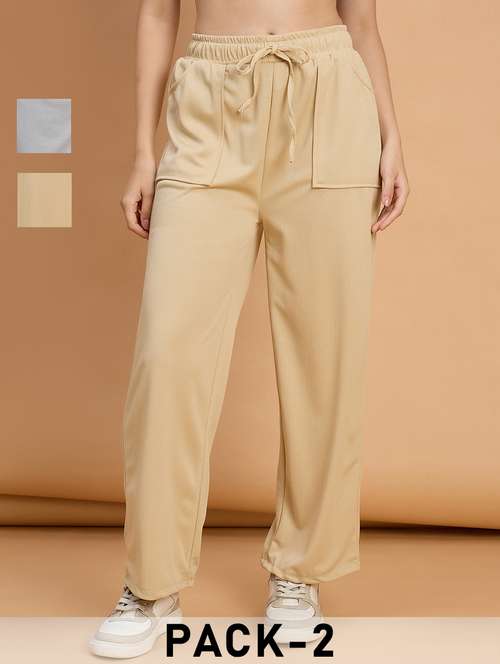women pack of 2 solid high rise track pant