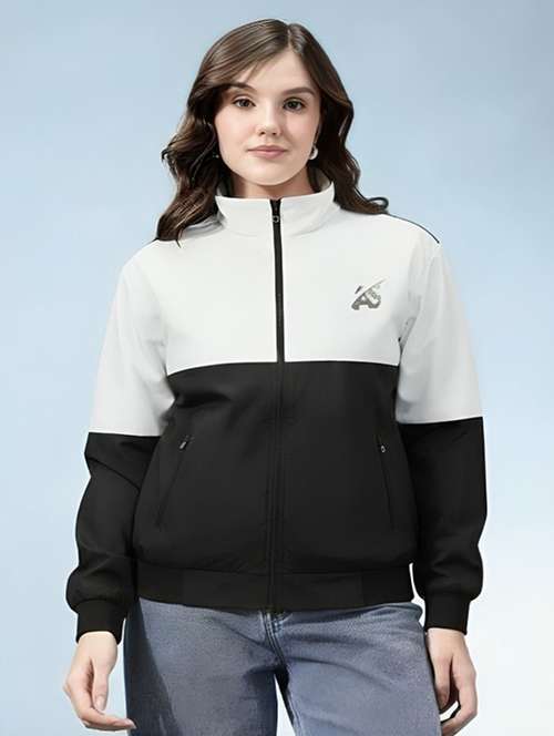 women color blocked long sleeve bomber jacket