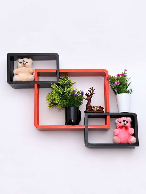 - » round coner shape inetrscting wall shelves rack set of 3-ornage & black