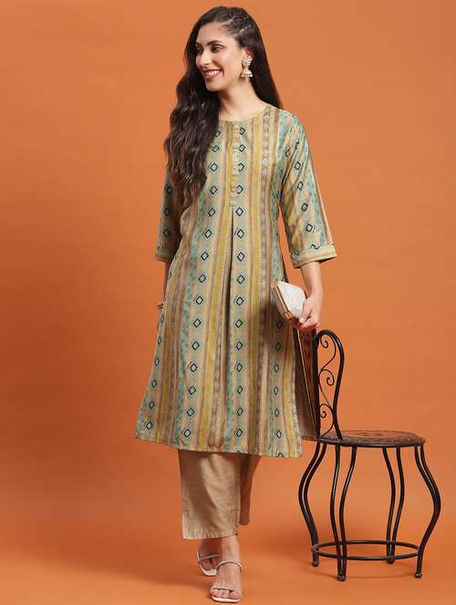 - Grab this beautiful kurta made up of cotton silk fabric featuring round neck designs.