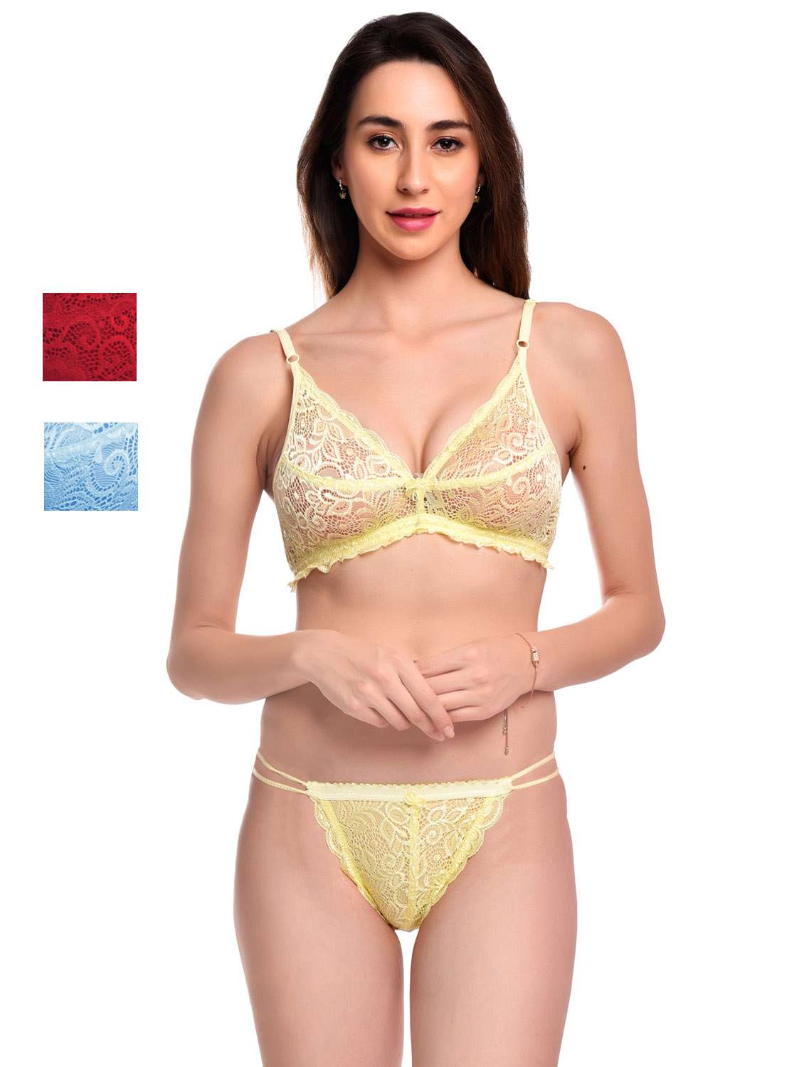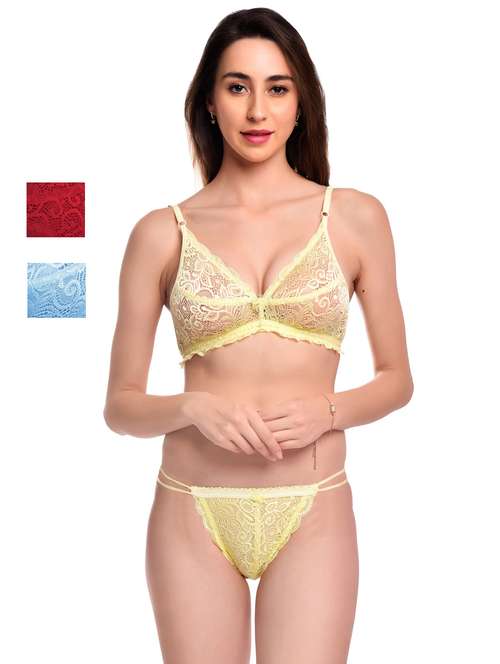• LimeRoad brings you this exotic lingerie set from Ladysoft made of net material in multi colours.