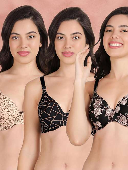 Shyaway HANA Pack of 3 Broad Winged Seamless T-Shirt Bra Multiway Seamless Wired Bra 3/4th Coverage