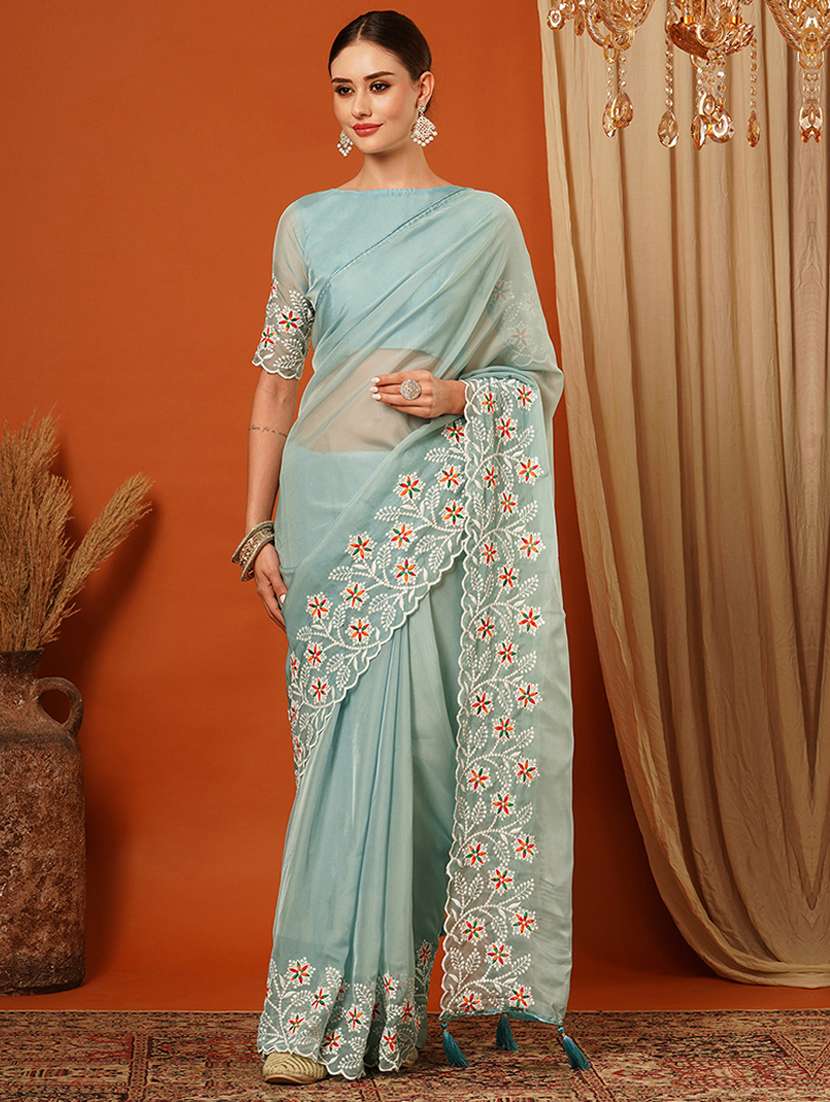 - » women solid with embroidered bordered saree