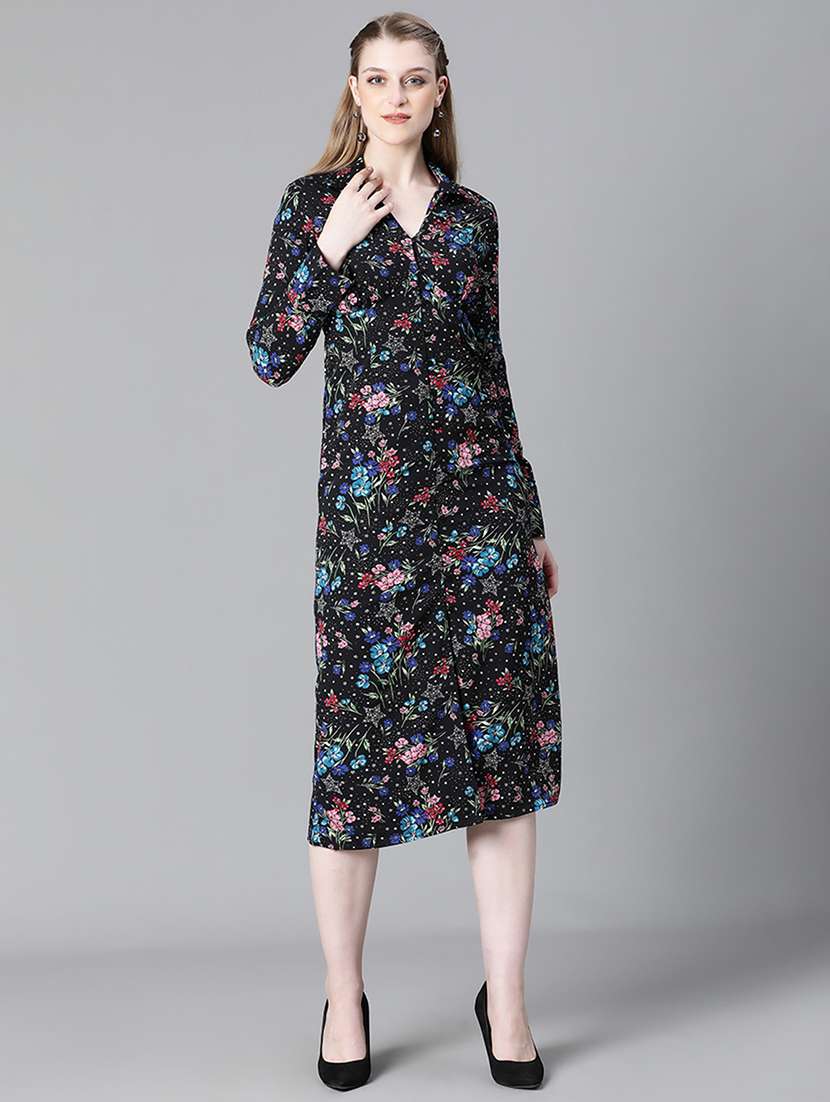 - » black floral printed button detailed midi dress