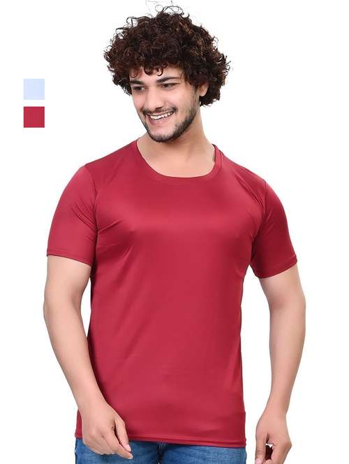 men pack of 2 solid round neck t-shirt