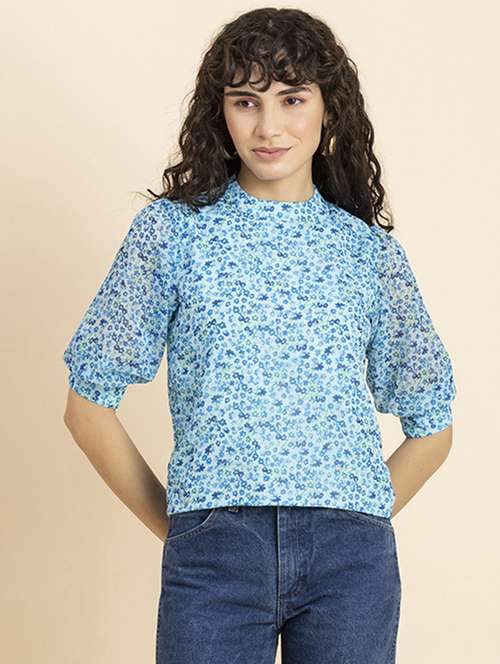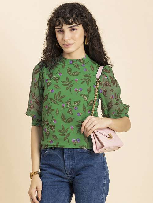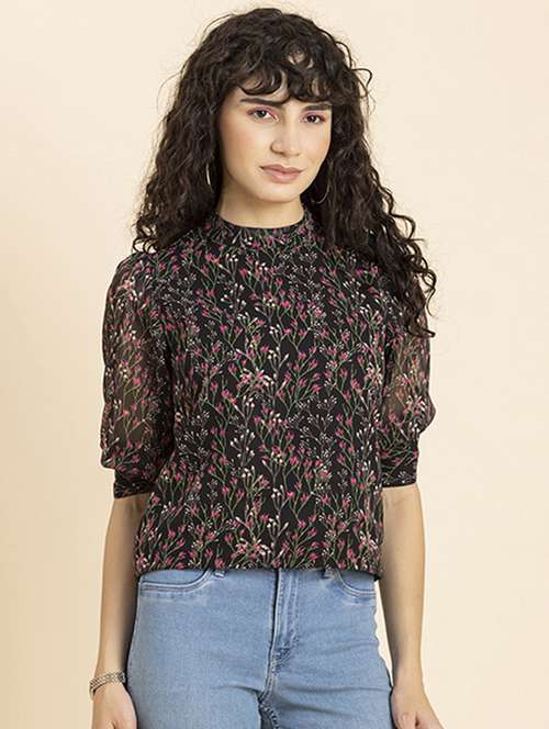 *Includes: This Clothing Consists Of 1 Top (Any Accessories Worn By The Model Are Not For Sale)*Material: Poly Georgette Gsm: 76*Top Length: 21 Inches (Approx.)*Model Stats: The Model In The Image Is 178 Cm Tall, And Bust 34\ Inches Is Wearing Size - (S) Small*Features: Turtle Neck, Cuffed Quarter Sleeves, Short Length, Lightweight And All Over Printed Pattern*Care: Dry-Clean Or Hand Wash In Cold Water With Mild Detergent, Air-Dry*Size Information: Please Refer To Our Size Chart Before Making The Purchase. If Your Size Is In Between Two Sizes, We Recommend That You Choose A Larger Size*Tags: Tops For Women, Western Tops For Women, Printed Blouses For Women, Cuffed Sleeves Top, Short Tops For Women, Turtle Neck Tops For Women, Summer Tops For Women