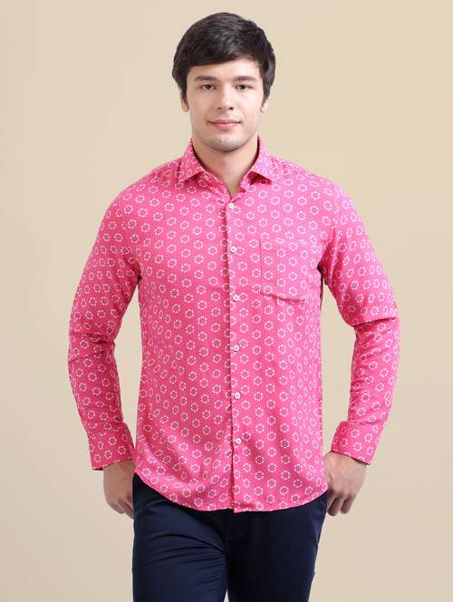 - » men regular fit printed single pocket casual shirt