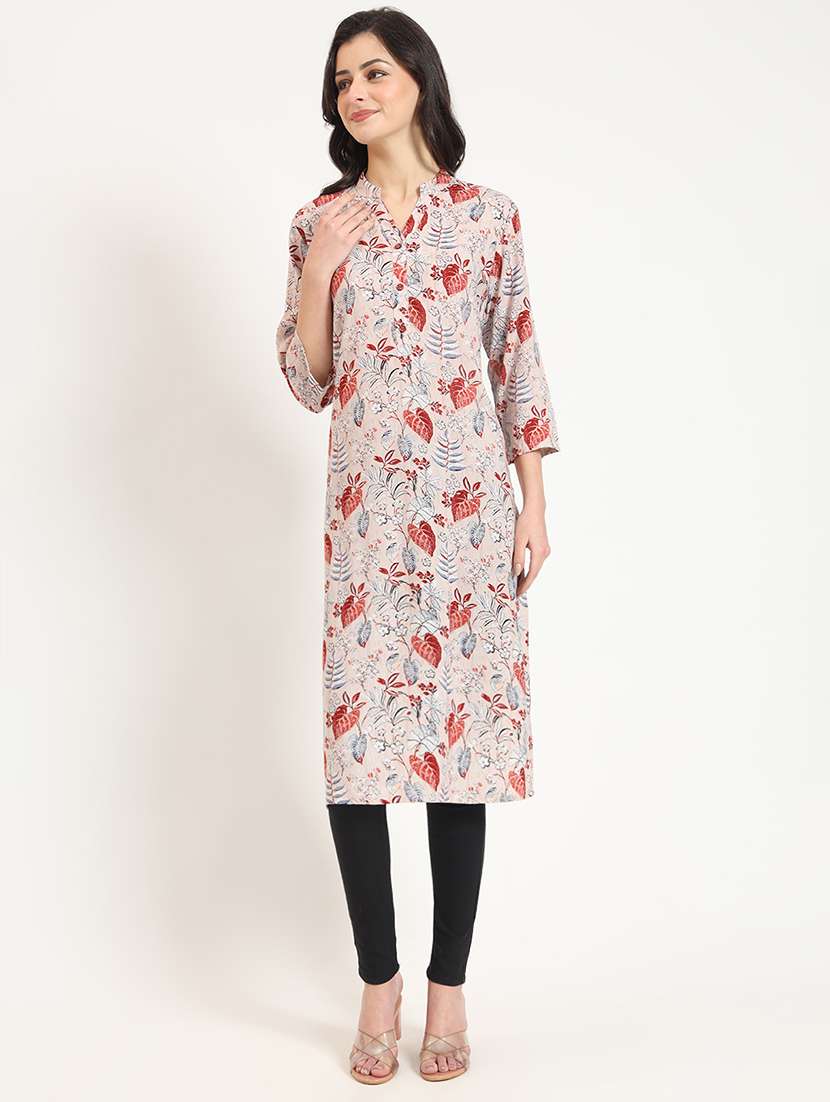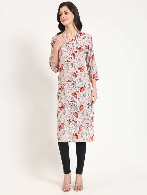 women floral three quarter sleeve straight kurta - 21743620 -  Standard Image - 1 women floral three quarter sleeve straight kurta - 21743620 -  Zoom Image - 1