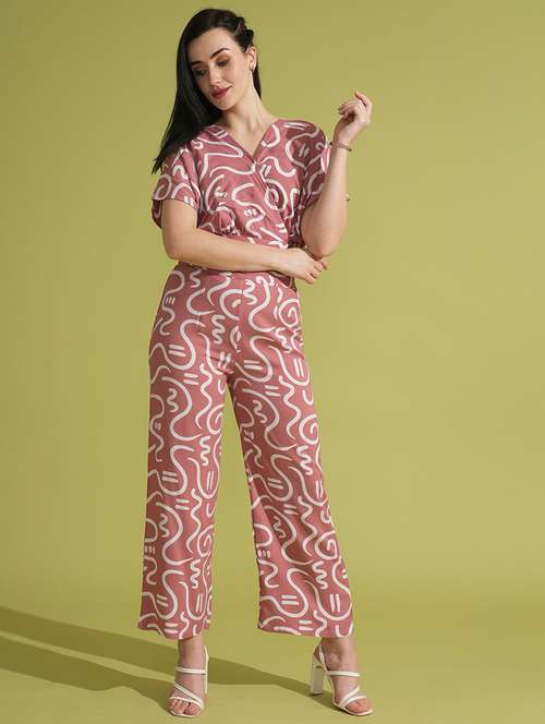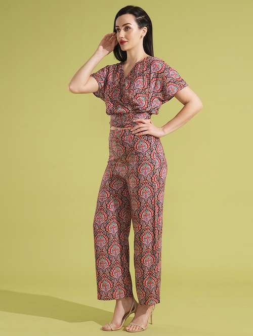 - » globus women multi-colour ethnic print wrap v-neck batwing sleeves back tie-up crop top & trouser co-ord set