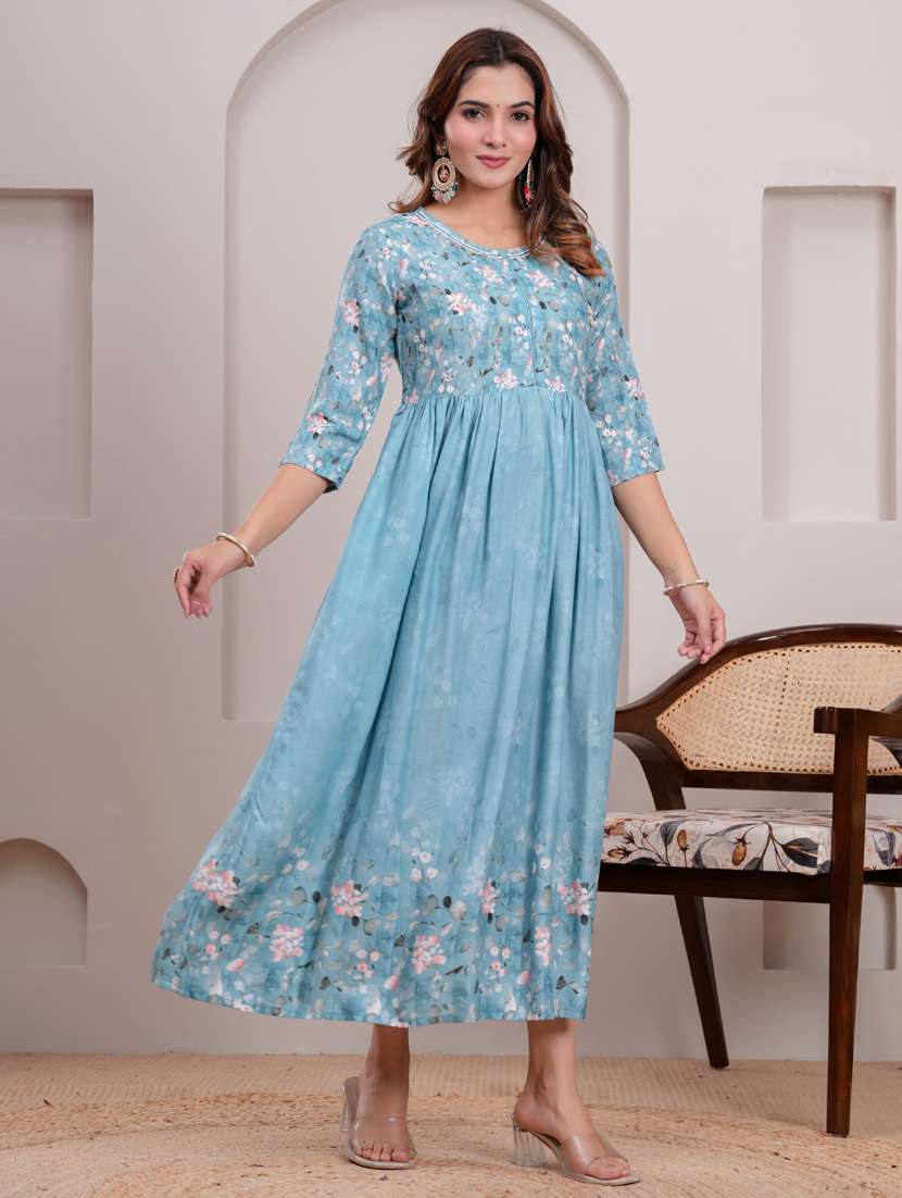 - » women three quarter sleeve flared ethnic dress