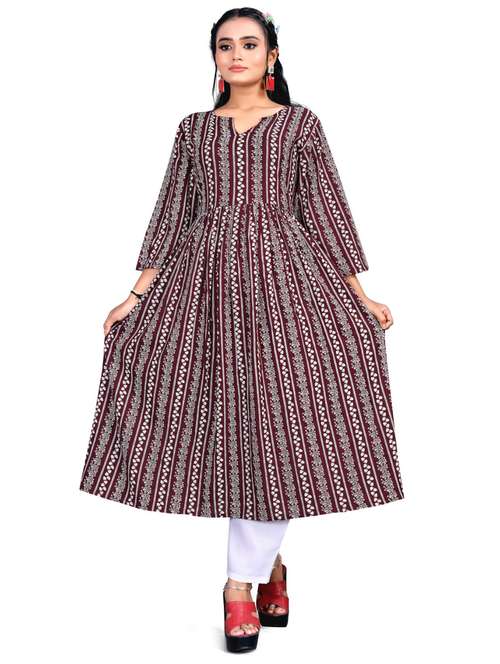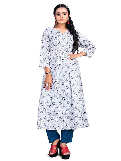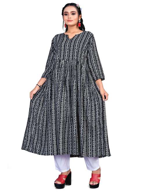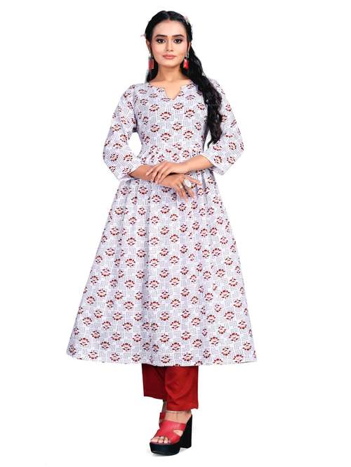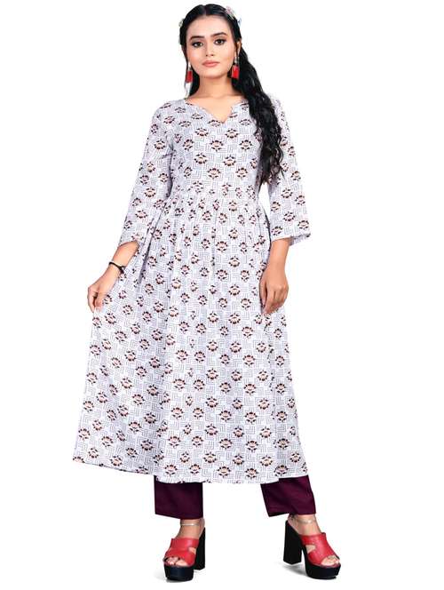 - Grab this beautiful kurta made up of cotton fabric featuring notch neck designs.
