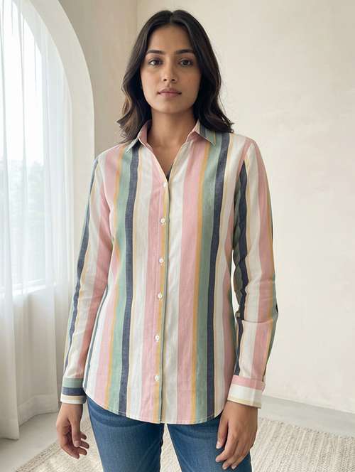 - » women striped collared long sleeve shirt