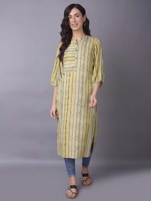 - Grab this beautiful kurta made up of cotton blend fabric featuring mandarin collar neck designs.