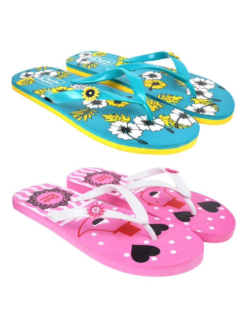 multicolored printed set of 2 slippers flip flop
