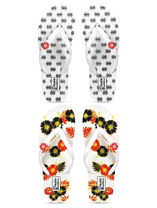 multicolored printed set of 2 slippers flip flop