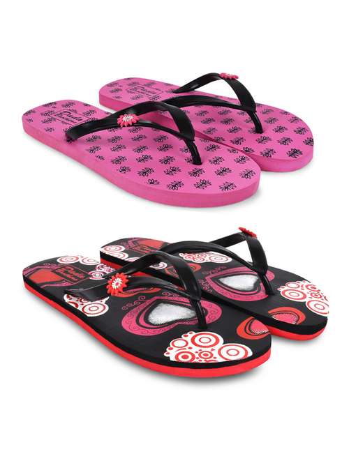 multicolored printed set of 2 slippers flip flop