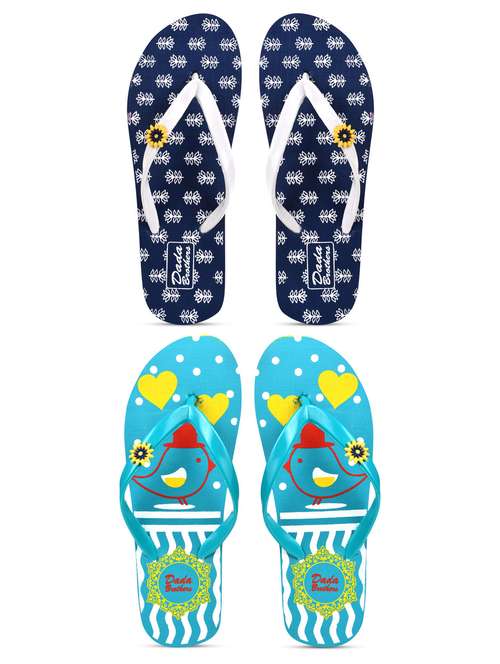 multicolored printed set of 2 slippers flip flop