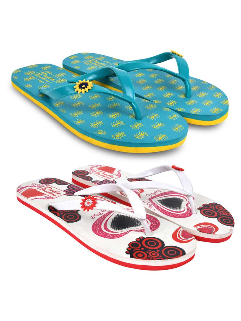 multicolored printed set of 2 slippers flip flop