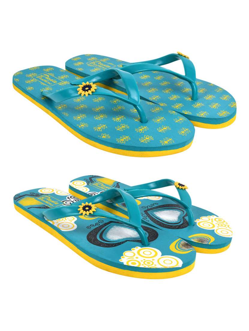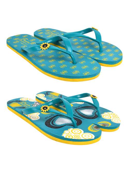 blue printed set of 2 slippers flip flop