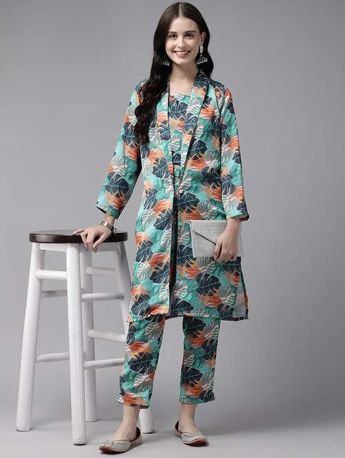 women printed top and trouser co-ord set with jacket - 21461810 -  Standard Image - 0 women printed top and trouser co-ord set with jacket - 21461810 -  Zoom Image - 0
