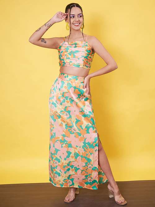 - » women floral printed top & skirt co-ord set