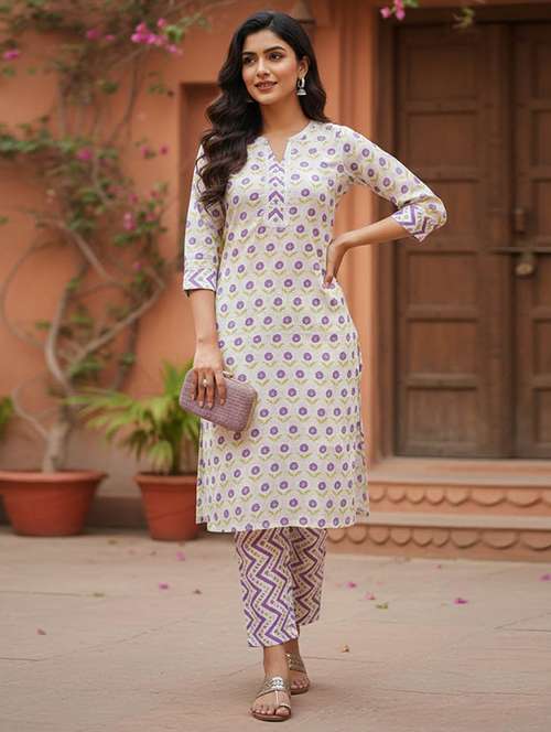 - Find gorgeous sets of ethnic wears in trending designs in white colors suitable for casual wear of occasions.