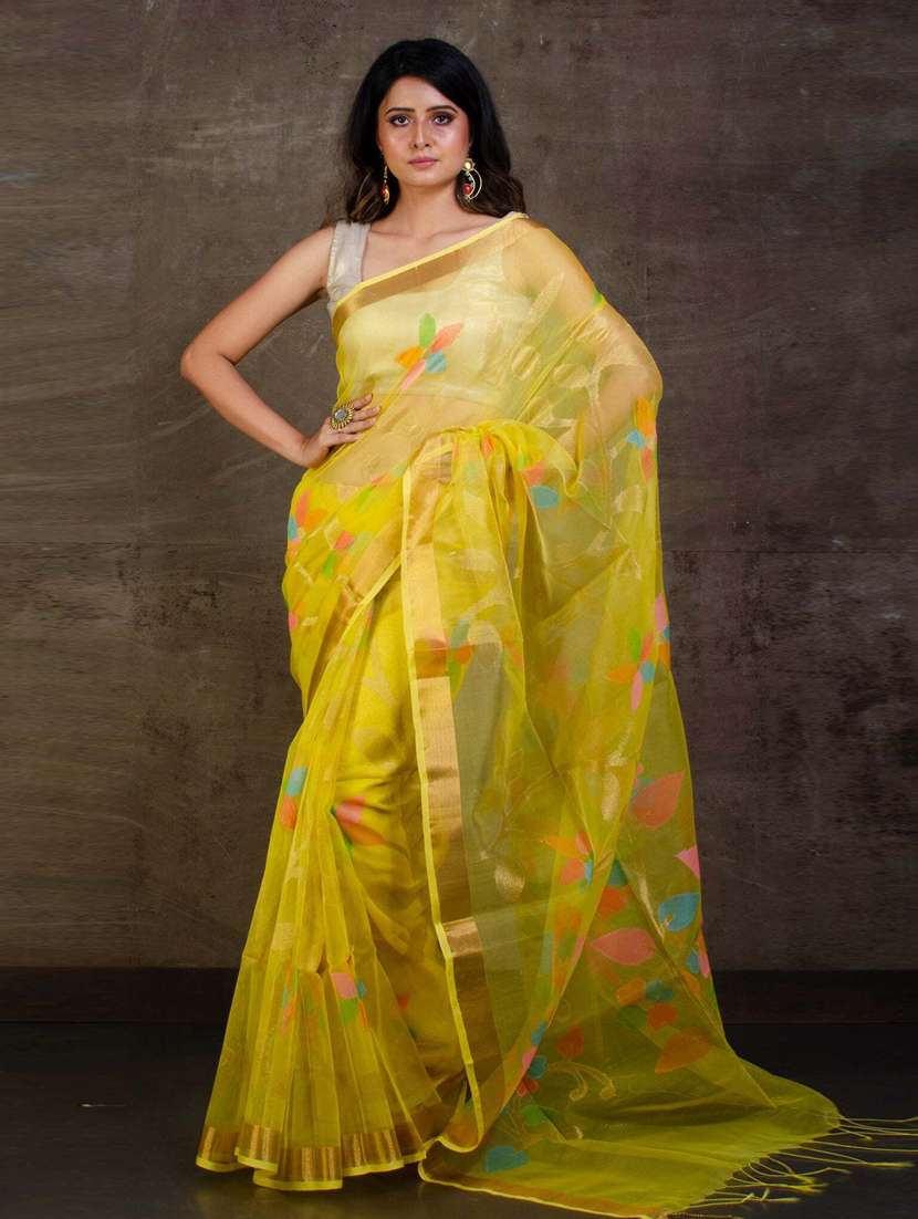 - » women yellow self design jamdani saree