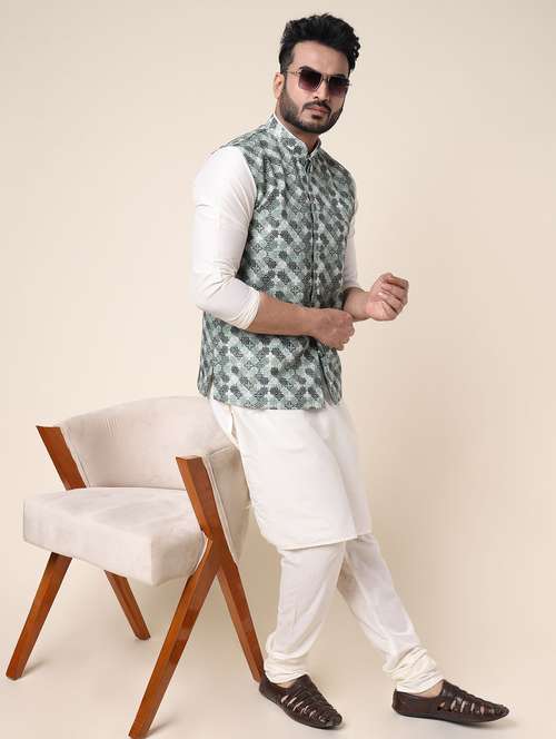 - » men printed mandarin neck kurta pyjama with jacket ethnic wear set