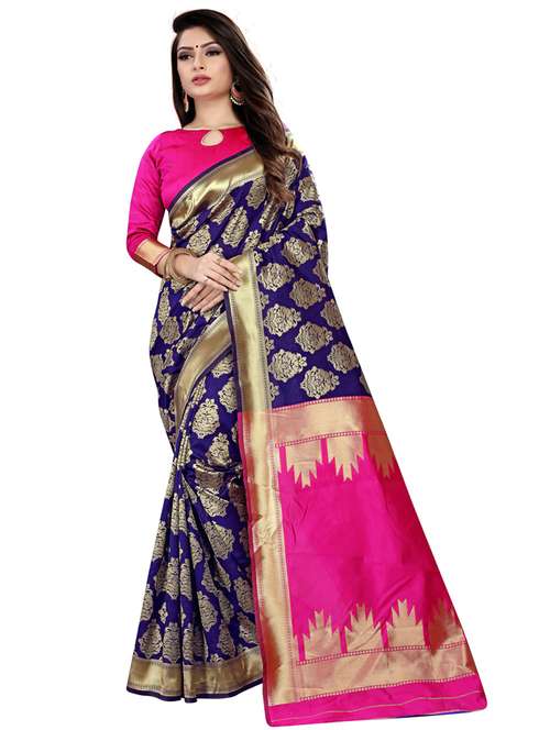 - » women navy blue banarasi saree with blouse