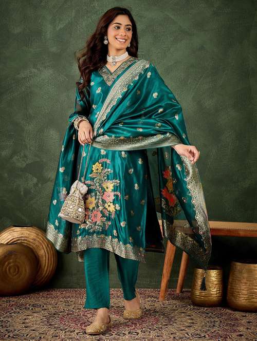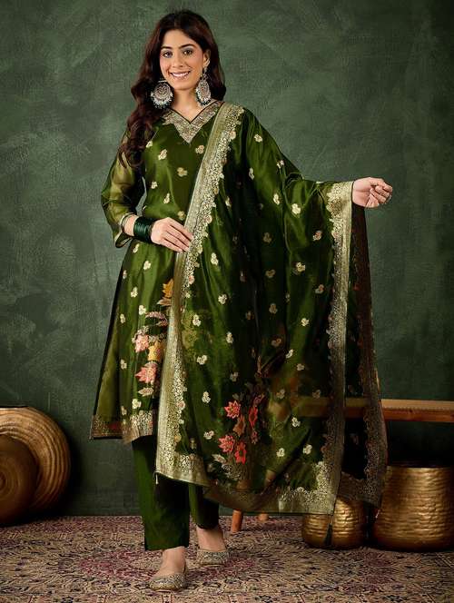 - Find gorgeous sets of ethnic wears in trending designs in green colors suitable for festive wear of occasions.